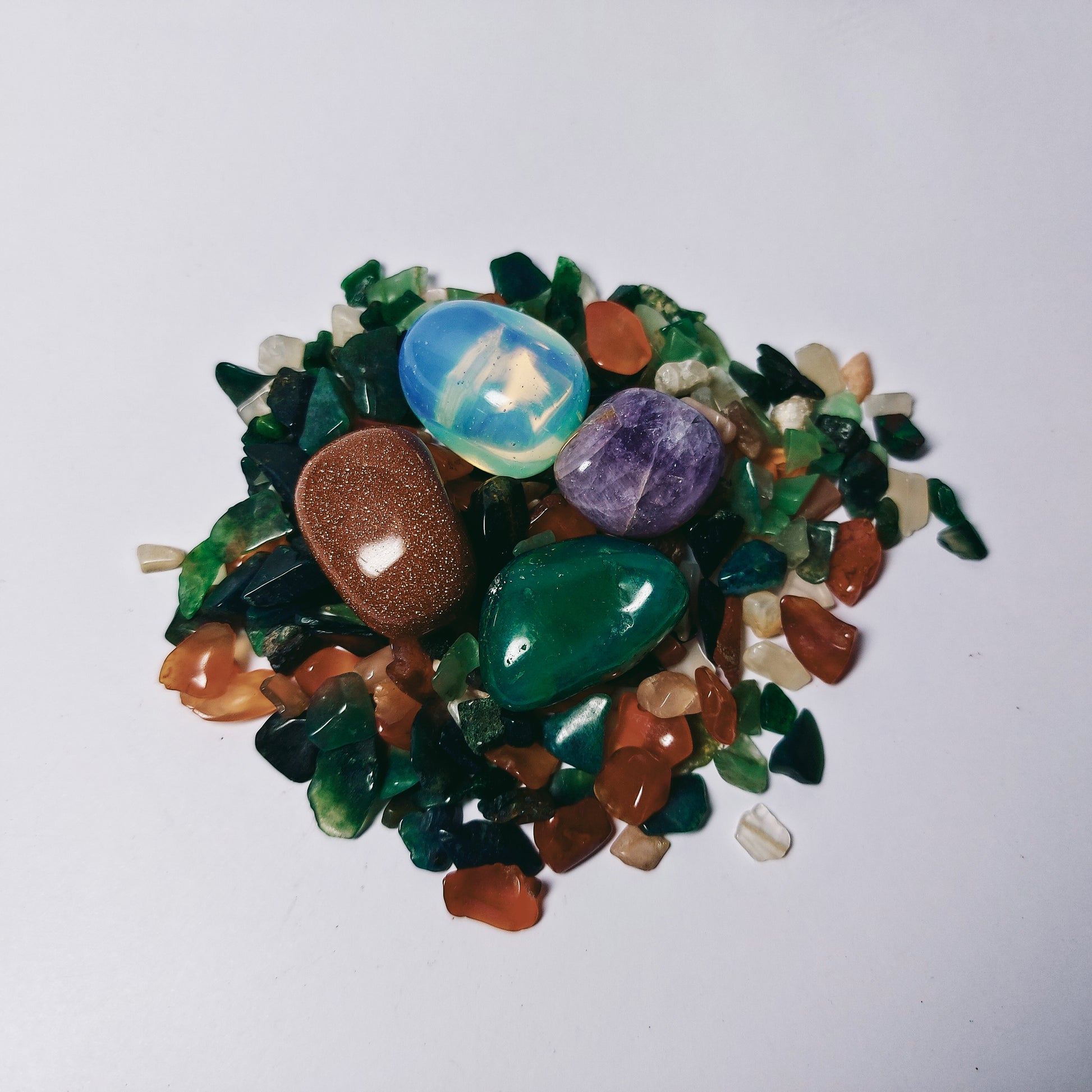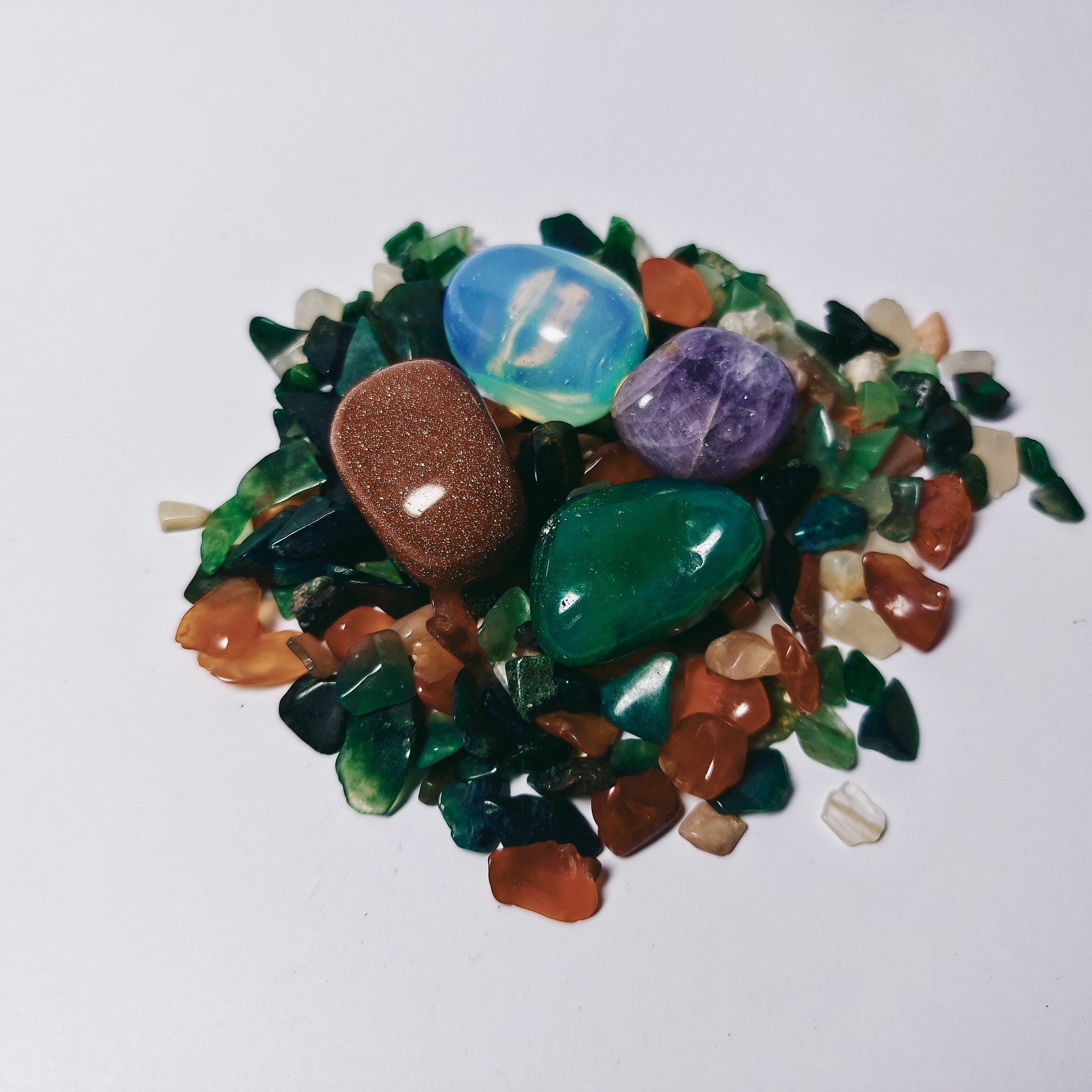 A bag containing 4 Medium to Large sized Crystal and assorted crystal chips. Information on your main Crystals.