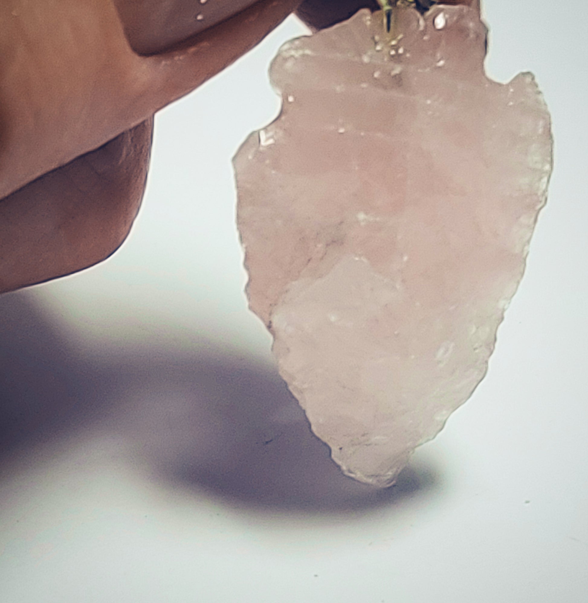 This Pendulum could also be worn as a pendant. This makes it incredibly versatile. It is an Rose Quartz Arrowhead.