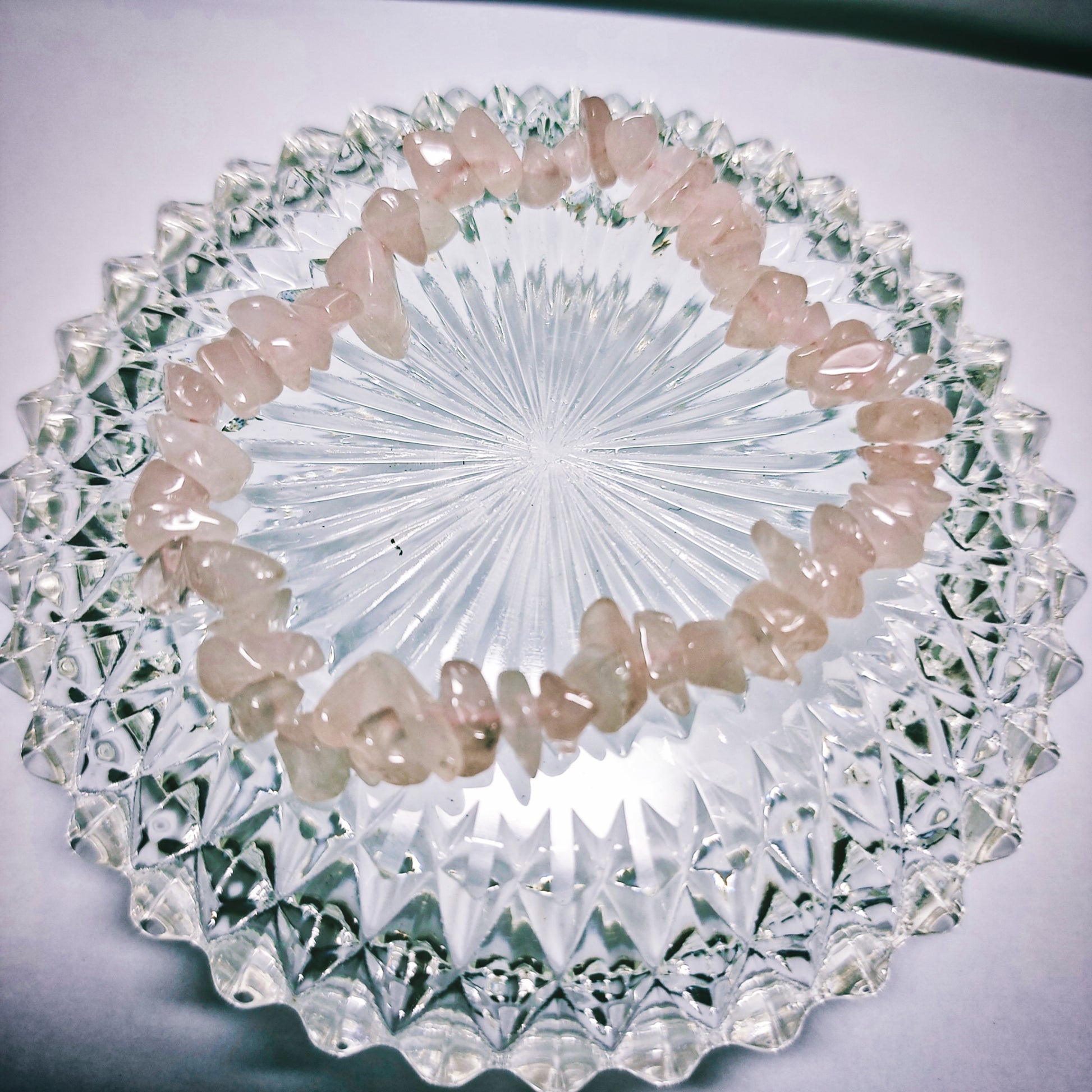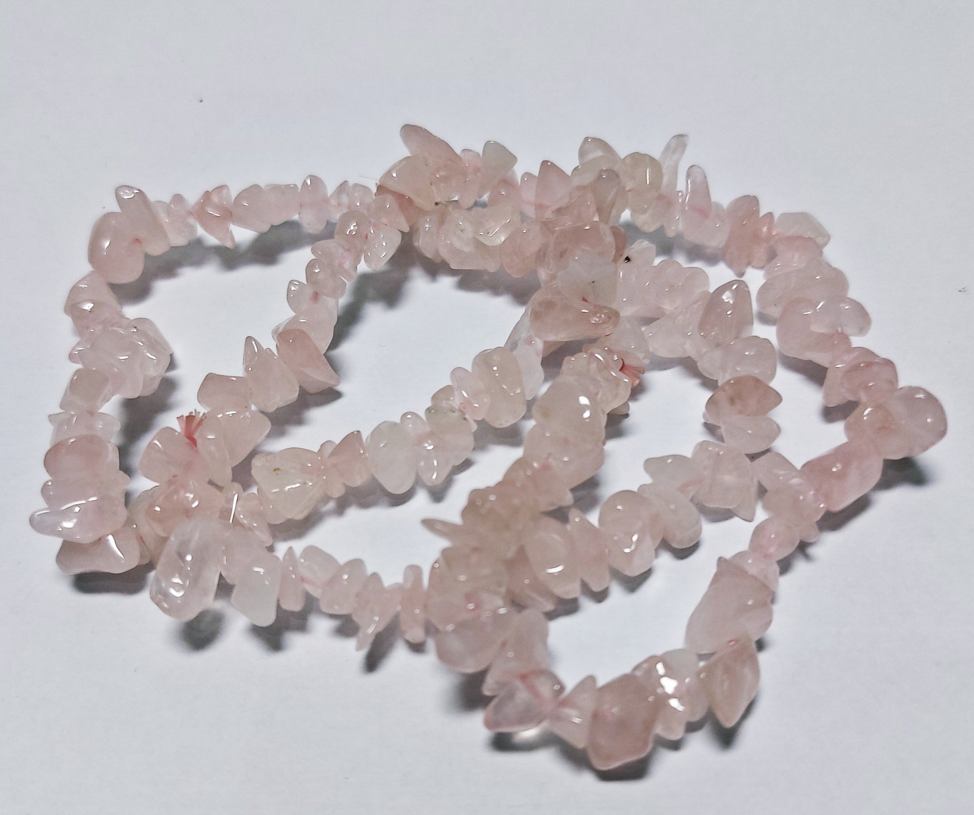 Gorgeous Crystal Chip Rose Quartz bracelet small chips sized crystals. Genuine Rose Quartz. It is best to remember that the love that the rose quartz supports is unconditional love. Love that is supportive and brings healing love. A crystal to give someone to heal a broken heart especially if this does not relate to romance. It is also used for balancing the heart chakra.